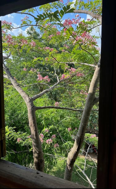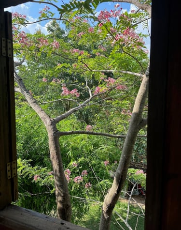 Discover stunning wildflowers and fruit trees surrounding our tranquil jungle treehouse.